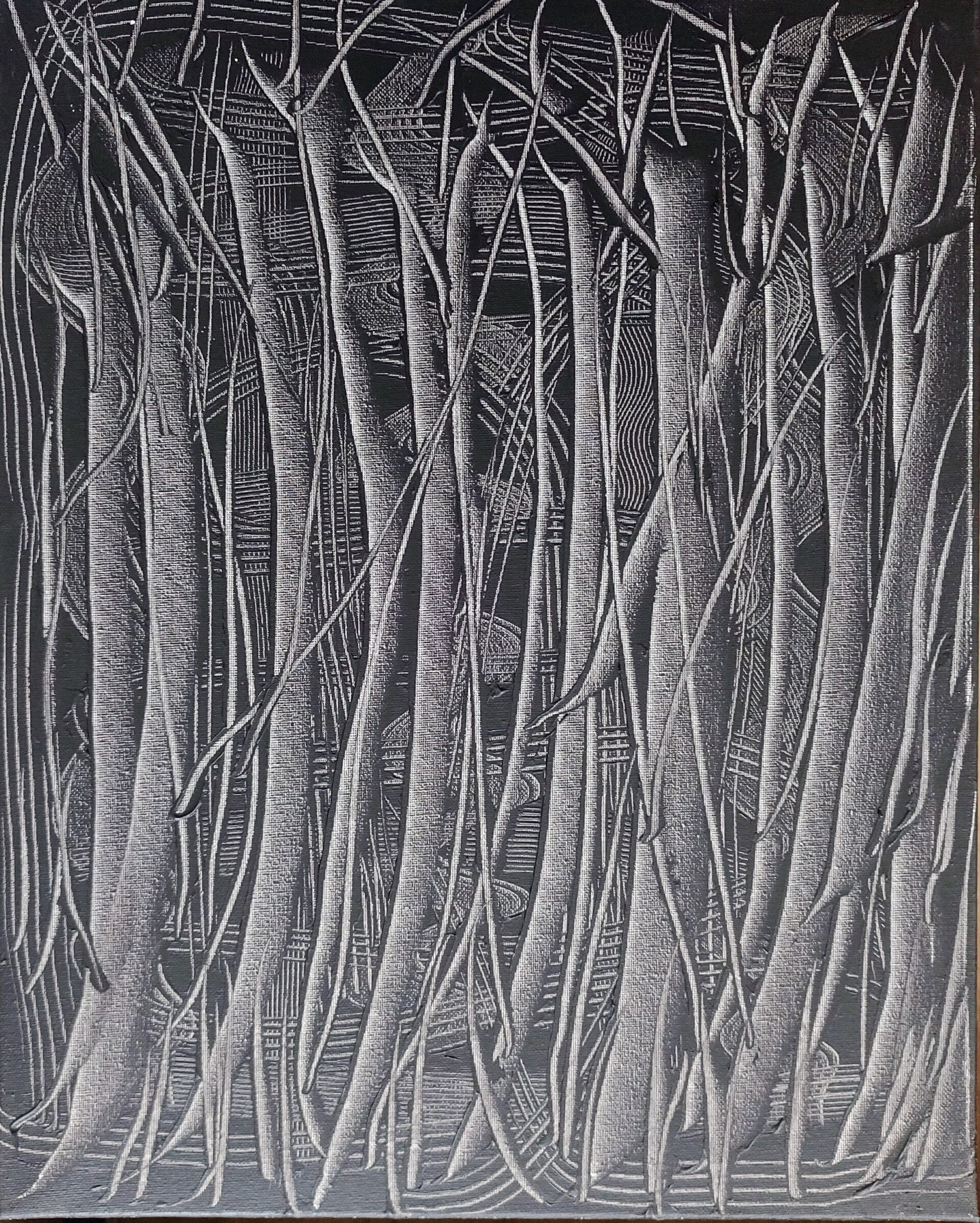 Meestal gebruik ik voor mijn schilderijen acrylverf maar ook zwarte houtskool. Een schilderij maken met een mix acrylverf, olieverf, houtskool en ecoline doe ik ook regelmatig.
